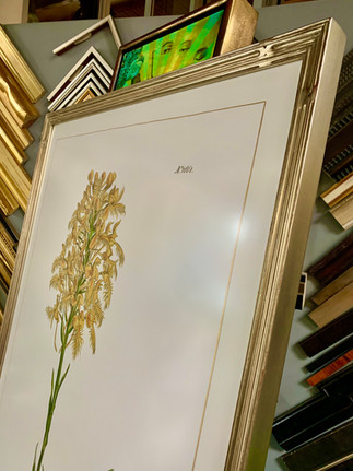 When selecting a style for antique botanical prints, we looked to nature to find the perfect frame. Since the grassy reeds and botanical flowers go naturally hand-in-hand, we selected a hand-carved rounded reed frame to reward the artist's rendering of the botanical flower. Thereby, picking up on the "transition" concept, we visualized the reed frame separating the artwork from the living space.